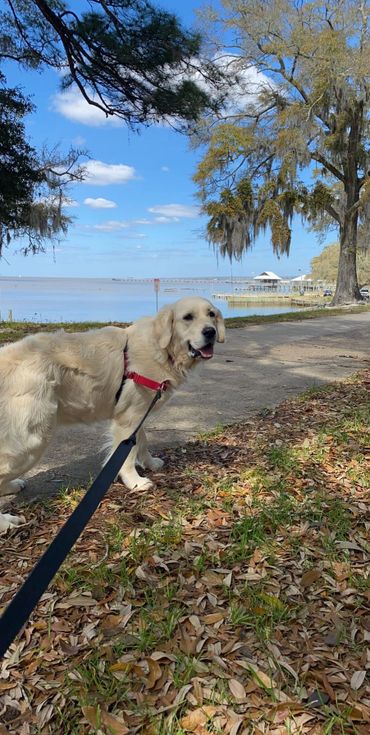 This is Southland Goldens Delta Rae. She is the baby of our pack, with her becoming eligible to breed on 2020. Almost too smart, but loving with the spirit of a class clown. She has a beautiful blocky head and natural golden retriever instincts.